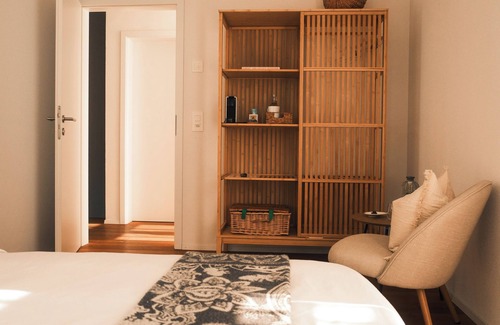 We offer two bedrooms with double beds located on the first floor and side by side. One private bathroom (WC & shower) for both rooms is available. Please note that we only rent the two rooms to the same family/group. Thus you will share the bathroom only with the persons who accompany you. You can enjoy a lovely morning, afternoon or evening on our garden terrace overlooking the lake and sunset. We can also offer you a lovely dinner for an extra 25.- CHF p.p. and an apero that includes a bottle of wine (red, white or rose) with a grazing plate for 45.- CHF to enjoy the sunset view on the terrace.