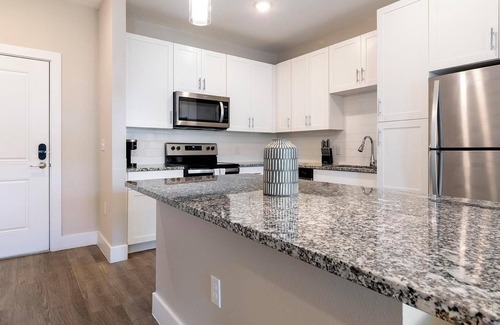 Have a magical stay at APEX South Creek, just minutes from Disney World, Universal Studios, and SeaWorld. Perfect for flexible extended stays, our spacious apartments come fully furnished with full kitchens featuring granite countertops, screened patios, oversized soaking tubs, and in-unit laundry. Relax by the resort-style pool, stay active in the fitness center, or let your furry friends roam in the bark park.