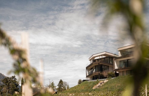 The new Villa Goyen - The View House impresses with its exclusive location and the unique panoramic views of the surrounding mountain panorama and the Merano valley basin. The large window areas, the elegant sun terraces with glass balustrade and the modern Desgin make the mansion Goyen an exclusive vacation domicile, which fulfills highest requirements at cosiness, comfort and situation.