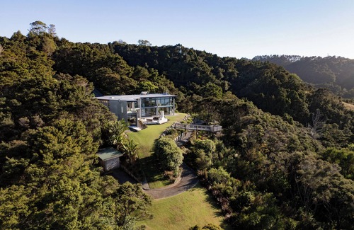 Te Rongo House is an architectural retreat located in the heart of the Parua Bay region. Thoughtfully designed with expansive living areas and floor-to-ceiling windows, it offers serene comfort and uninterrupted views of the surrounding landscape. Spa Pool, Pool table and fireplaces.