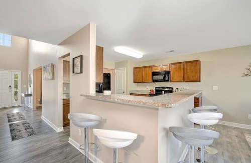 Located in the University Area near UNCC, this home is ideal for families visiting students or groups exploring Charlotte. Nestled in the quaint Carb Orchard neighborhood, it offers quick access to North Charlotte’s restaurants, bars, and shops.