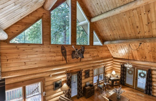 Lazy River is an elite cabin that is in a class all on its own. Vaulted cathedral ceilings and hand-hewn logs surround you with the most impressive craftsmanship.