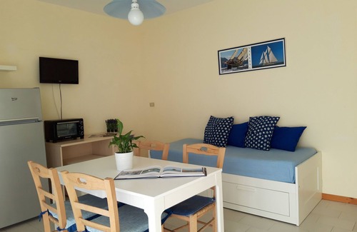 The two-room apartment is located on the first floor, in a small residence, 100 meters from the sea. Nearby there are numerous equipped bathing establishments, free beach, restaurants, bars, newsagents, supermarket .... Oasis protected LE CESINE