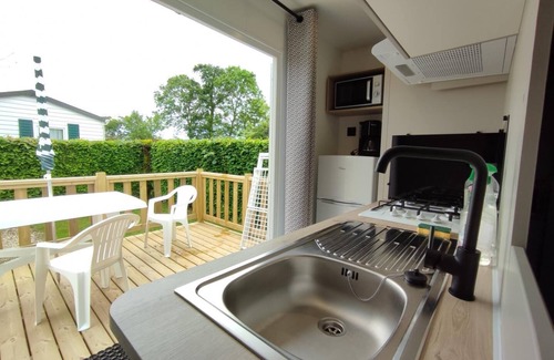 Relax by the communal pool or sip a drink on the deck or patio of this 237-sq-ft vacation home. As for the great indoors, you can try your hand at table tennis, or enjoy the free WiFi and TV.