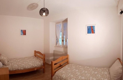 In the heart of the village of Arbignieu, the gîte Le Domaine de Merlin (this is the name of our Carthusian cat), has a capacity of 7 people with its 3 bedrooms. Adjoining the owners' house, you access the gîte through a shared and secure courtyard. The main entrance to the gîte is via an equipped kitchen that opens onto the living room and its lounge area with fireplace. separate wc with washbasin. Upstairs, a large corridor leading to 3 bedrooms: the first has a 160 bed with a library area for children and adults; a second bedroom with two 90 * 190 beds and the last bedroom with 3 90cm beds. All bedrooms are equipped with a built-in closet and an office space. A bathroom with bathtub and a bathroom with shower .. Separate toilet. For sunny days, you can take advantage of the owners' heated swimming pool. Private garden at the gîte, accessible from the living room. Oil and wood heating. Many walks for young and old from Arbignieu to discover the lakes of Conzieu or Bugey, the Crêts d'Innimond. About 3km from the Viarhôna (cycle path on the banks of the Rhône) to discover varied landscapes, vineyards and the Bugey and gastronomy. Cinema l 'Arlequin in Belley 5 kms. Nordic site of Praille 01110 Hauteville-Lompnes 35 km away (cross-country skiing and downhill skiing ideal for families). Family-sized Fitilieu zoo 38490 Les Abrets at 29 kms