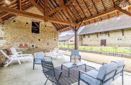 Pascal & Patricia open the doors to an elegant authentic 19th century Brionnaise farmhouse steeped in history, carefully restored in accordance with the rules of the art, located in the heart of the rolling countryside in the hollow of the famous sublime Charolais bocage. Absolute calm in the heart of a peaceful "dispersed" rural hamlet, nestled on the immediate edge of fields, meadows & forests. Superb landscaped setting totally relaxing & soothing, literal little "green paradise" for young and old. Very comfortable cottage. Ultra spacious. Rooms with noble dimensions. Complete quality equipment. Warm, contemporary country character enhanced by the rich traces of the past (majestic stone fireplace mantels, framework, French ceiling, original stone walls, etc.). A lot of charm & character. Soft & exotic atmosphere of an old house mixed with a cocooning & cozy spirit. Pleasant, well-kept property of 1 ha with electric gate including a vast sheltered panoramic terrace of 75m² (with summer kitchen & "outdoor" relaxation lounge), large lawned garden & vast natural space (with a pétanque court, swing & Ping pong table). Beautiful open view over the surrounding countryside. Composition: Detached house adjoining an outbuilding sometimes occupied by the owners. Wireless. Oil central heating. 1st floor: kitchen, living room (table football), living room, 3 "duplex" bedrooms (2 including 2 single beds 90x200cm which can be twinned into a double bed 180x200cm + 130x190cm sofa bed as an extra / 4 single beds 90x200cm which can be twinned into a bed 2 p. 180x200cm + convertible 130x190cm as an extra) with TV & private bathrooms (shower / Wc). 2nd floor: 2 bedrooms (2 single beds 90x200cm which can be twinned into a double bed 180x200cm / 2 single beds 80x200cm which can be twinned into a double bed 160x200cm), bathroom (shower / Wc). Garden + sheltered terrace + pétanque area + bike room + private parking. Amenities 6 km.