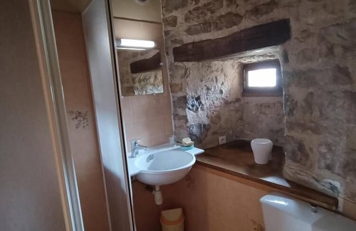 On the ground floor: living room with a kitchen corner, a bathroom with WC. On 1st floor: 1 bedroom with a bed of 1,40 on the 2nd floor: a bedroom with 2 beds of extra in 0.90 m. electric heating. 9 m² per level. Gite in a circular Dovecote with a scenic view on the Valley of the Cele. Near Figeac and the Causse, sporting activities and historical and architectural discoveries are numerous. Sans vis à vis, located next to the House of the owners who also offer the GR0817 cottage.