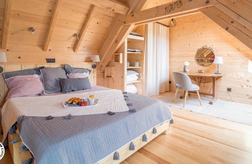 Stay in a real bubble of comfort and well-being just for two! You will be totally seduced by the exceptional decoration of the place. Ideally located a stone's throw from Lac Chambon in the Massif du Sancy, the "Le Sarreyras" gite, an independent house, consists of a large living room on the first floor including a kitchen open to the living area with a pellet stove for your beautiful winter evenings and a shower room / wc. Upstairs, a sleeping area with a 160 bed, cocoon of serenity and well-being with spa bath overlooking Lake Chambon. You will take advantage of the stretched net overlooking the living room, ideal for relaxing and reading a book in the library area. Outside, a beautiful wooden terrace with a view of Lake Chambon is available to you and behind the cottage is a second terrace with garden furniture and vegetable garden. WIRELESS. Bed made on arrival, bath linen provided. Heating included. Ski room. Private parking. Access is via a wooden staircase, a gîte not recommended for people with reduced mobility. Shops and services in Chambon sur Lac 0.5 km and Murol 2.9 km. Many activities and leisure activities nearby: Lake Chambon, Chaudefour Valley nature reserve, the villages of Murol, Saint Nectaire, Besse and the ski resorts of Super Besse and Mont-Dore.