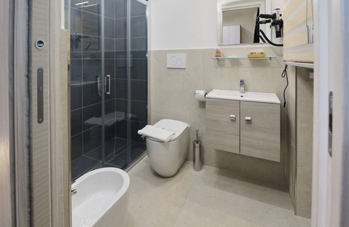 Among our offerings, you'll find complimentary WiFi, a safe, a minibar, a flat-screen TV, and 24-hour assistance. Upon your arrival, you will be greeted with a delightful welcome kit and can enjoy a breakfast included in your stay. Our mission is to make you feel pampered, providing the highest standards of cleanliness and quality. For your relaxation, you can take advantage of the sauna, hot tub, and emotional shower, with the option to request a "romantic" kit. Private Parking at 200 mt from the establishment at the cost of € 5,00 per day.