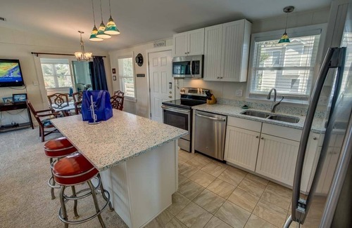 “Let's Do Sunset” is the perfect name for this adorable cottage! Boasting a great pool area with Tiki Bar and sparkling pool, the sunset views from the rooftop deck are absolutely breathtaking! Rent bikes or bring your own, because this established local neighborhood has quiet streets and miles of bike paths along the sound for gorgeous views. Located on the west side, near the sound, there is plenty of free parking at beach accesses all along Kitty Hawk and Kill Devil Hills to take advantage of for a day on the beach. Meanwhile, when the day on the beach is done, you will have a quiet, charming and delightful refuge for your family to enjoy. The kitchen has beadboard cabinets, stainless steel appliances, and quality countertops. The décor is beachy cottage chic. Bedrooms have quality bedding, pretty décor, and LCD TV's.