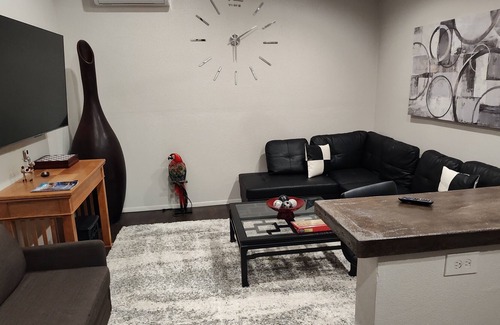 Enjoy fresh mountain air with amazing mountain view. Spacious living quarters 900 sq. ft large cedar deck with fire pit. 2 lg televisions, wireless internet. Redlight therapy lamp and slot machine in the cabin. King size bed, futon, sec sofa, kitchen, coffee bar, walk-in shower and electric fireplaces, ac/heater. Private pool shared with host. Family gathering area and front porch w/ fire pit and gas bbq for grilling. Kayak and ebike rental, lots of parking and ceiling fans. 24 hr. laundry mat close by and access to the river minutes away. Sedona, Prescott, Flagstaff, Casino and shopping for guests' entertainment. Recently added at Liberty Casa is a telescope for star and moon gazing at night and also owners are creating a bird watching experience adding bird houses right in front of the porch and a large water feature to attract birds and wildlife.