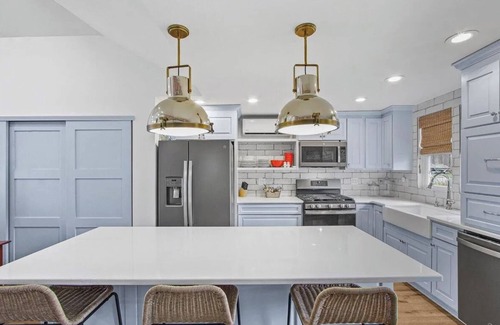 The kitchen, a focal point of this cottage, is a chef's delight. Fully equipped with stainless steel appliances and stocked with pots, pans, and utensils, it invites you to whip up delicious meals using fresh, local ingredients from Hurley Farms (a short five minute drive). Whether you're brewing a morning cup of coffee or preparing a family dinner, this kitchen is designed to cater to all your culinary needs.