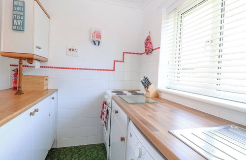Amenities: Electric central heating. Electric oven, electric hob, microwave, fridge/freezer, washing machine, kettle, toaster. TV with DVD player. Fuel and power inc. in rent. Bed linen and towels inc. in rent. Free public car park. Non-enclosed shared communal garden with lawn and furniture. Sorry, no pets and no smoking. Shop 0.2 miles, pub 0.1 miles, beach 0.4 miles. Note: Slope leading up to door and step over threshold, please take care. Note: WiFi available in the clubhouse. Note: Shared outdoor swimming pool onsite open May to September. Note: Good Housekeeping Bond of £150 required