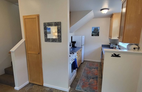Unique! Townhouse with 1BD/BA, living area, sofa bed, bar table, HD TV, cable and highspeed internet. Small patio and fenced backyard. Located in the Sunset area of Arcata. Easy walk to Cal Poly Humboldt and downtown Arcata. This modern energy efficient home has forced air heating, large double-pane windows with sunny southern exposure, tall ceilings with recessed lighting, and mature fruit trees.