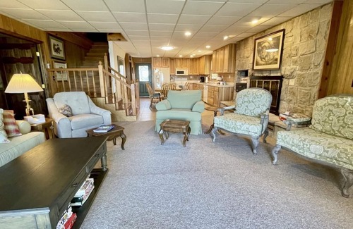The main floor owner's suite has a King bed and it's own full bath with stand-up shower. The second bedroom on the main floor has a Queen bed and easy access to a full bath with shower and a full laundry room. The upstairs loft has four Queen beds, a full bath with tub/shower and a great view of the lake!