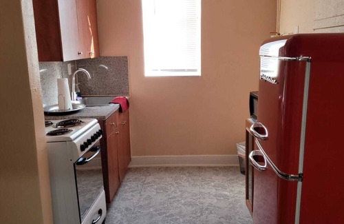 This large apartment is located just steps from the marlins stadium. Fully Furnished apartment with all the basics for a short and wonderful stay. Kitchen equipped with everything you need for cooking. A Murphy bed and a second additional double size bed inside in a private room. We have wireless Internet, air conditioning, easy access.