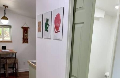 The Little House is a stand alone studio style home in the side yard of our property. We spent months gutting and renovating it to transform it into a comfortable and welcoming space for guests. There is a full kitchen, a bathroom and stall shower, and brand new queen sized bed (Bear brand mattress). There is a smart TV connected to the wifi that you can use to stream your favorite shows. Coffee, tea, and basic cooking essentials are provided. Flip through the Welcome Binder for pertinent info regarding your stay as well as our guidebook of great places around town (you can also access the guidebook via Airbnb).