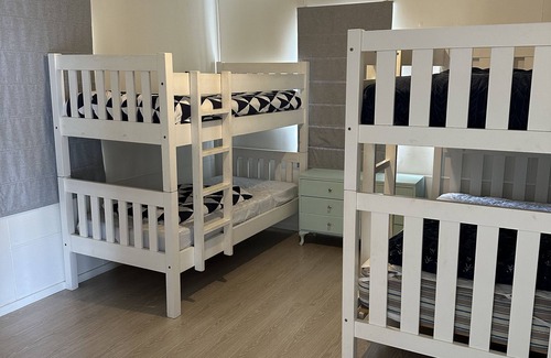 - Bedroom Two = 1 set King-Single Bunks, 1 set Single Bunks (sleeps 4)