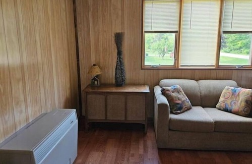 Thanks for viewing our home. Upon entering, you will notice the tall ceilings and open concept kitchen. The kitchen combined with the living room area offers a large space to relax and entertain. The kitchen offers all the basic necessities, including a fridge/freezer, hot plate, toaster oven with built-in griddle and coffee maker, and microwave. There is no oven. The living room has a TV with access to streaming service. It also has a sleeper sofa with a queen pull out mattress. Turning down the hallway from the kitchen, you will pass by the bathroom and walk into a large bedroom with a comfy firm King sized Bed where you will enjoy a quiet nights rest. In the bathroom, there is a stand-up shower, toilet, sink, and washer/drier. We do have Wifi, but it can be inconsistent at times due to the country setting. Outside, you will notice two chairs and a small fire pit for relaxing as well as a small gas grill right outside your door at the top of the stairs. There will be (2) bikes available for use located underneath the stairwell for guests to use. We hope you consider us for your next stay in Door County!