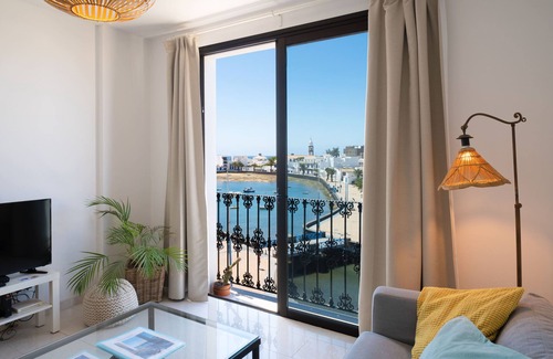 The bright living room offers a smart TV, a comfortable sofa and views of the Charco de San Ginés. The building is very quiet and has a lift for easy access. You will be just a few steps away from restaurants, cafés and the lively Calle Real, with shops and businesses everywhere.