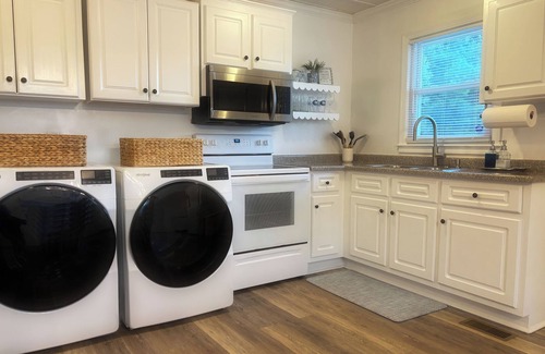 Enjoy sitting outside rocking on the front covered porch or enjoy the fenced-in back yard during your stay!