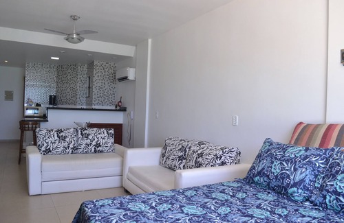 Apartment with total comfort for 4 people. We offer a cozy and fully structured environment with a double bed, double sofa bed, television, wifi internet provided by the condominium, fan and air conditioning. It also has a kitchen equipped with fridge, 2-burner cooktop, microwave, blender, coffee maker, sandwich maker, cookware and complete dishes. The building has a terrace with deck, swimming pool, sauna, panoramic view, 24 hour concierge and revolving garage.