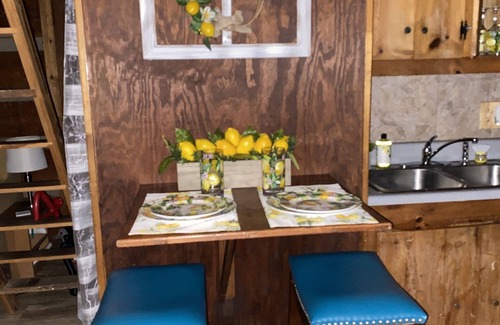 Our rental is a 1 bedroom sleeping loft with queen size bed (must climb ladder to get to loft), sleeper sofa in living room, and 1 full bathroom, large deck and covered front porch, with parking right at the front doorstep. You will also enjoy a self check-in.