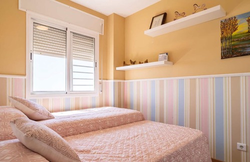 Look forward to this family-friendly and colorful vacation apartment with sea view. | Apartment in Rincón de la Victoria