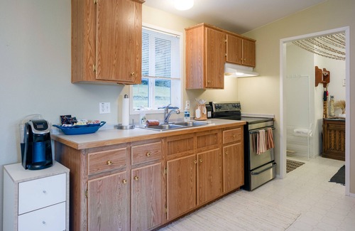 This light, bright, and cheerful home has vaulted ceilings throughout. Cozy up to the wood burning stove on a cool fall morning and enjoy a cup of coffee from the Keurig machine (coffee pods not provided). The 55’ televisions provides streaming options for you to login and use your own streaming accounts. Each of the three bedrooms is comfortably appointed with queen size beds. And each of the two bathrooms provides a tub/shower combination.