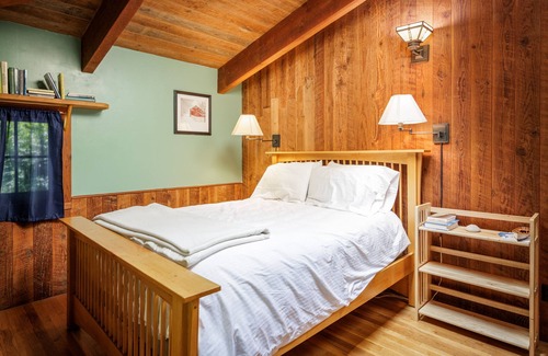 Sweetbrier Cottage is an iconic Lopez style home. You will fall in love with this special wood beamed, rustic, craftsmen two-bedroom (one queen, and one full bed, one queen sofa bed), one bath cottage. The high vaulted ceiling provide this home an open and spacious feeling. As Lopez is known for its farms and agriculture, this home is the perfect place to take in Lopez’s sweeping farmlands, breathtaking sunsets over the grassy fields and maybe see a cow or two. Sit on the covered deck sipping your coffee and enjoy the bird watching with a nearby pond in view. Create meals for the family in this open remodeled kitchen. Or cozy up to the fire in the living room while watching your favorite movies. Grab a book and take a nap in the daybed overlooking your lovely view! With a wooded back drop and far off the main street away from others. This home is perfect for families, friends, couples or a private getaway. Located in the center of the island you are close to everything. An easy bike ride to Fisherman's Bay Marina, a short 4-mile drive into the Village, or head to the South End to explore Lopez famous beaches. Come stay and fall in love with the true heart of Lopez Island.