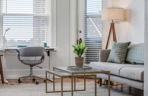THE SPACE: Welcome to your home away from home while visiting the city. Recently updated and designed with a mid century style and Boho accents. This 2-bedroom/1-bathroom apartment will suit all of your needs. Relax after a long day working or exploring in front of our 55” Fire TV ready to log into your streaming accounts. Whip up a meal in the stocked kitchen, which includes a drip coffee maker, tea kettle, coffee, tea, sweeteners and creamers, various cooking utensils and a dishwasher. The bathroom includes all the necessary towels and bath products (hand soap, lotion, shampoo, conditioner, body wash). Guests enjoying a longer stay will welcome the washer/dryer, and you will be able to stay connected with our 250+ mb WiFi.