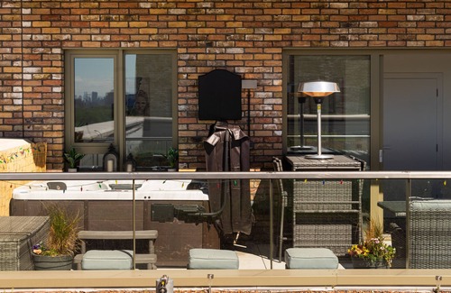 A spacious and stunning apartment with a large terrace, city views and a hot tub. The perfect escape to relax and enjoy with family, colleagues or friends. Situated on the river thames and next to public transport for convenient travel into the city. Only 20 minutes into Soho and other exciting areas of London. A walk along the Royal Albert Wharf takes you to the London Excel, where many exciting events and exhibitions take place.