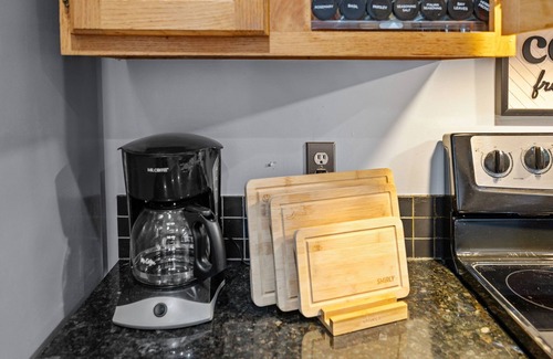 Kitchen: Fully stocked with all the pots and pans you need for cooking. Granite counter tops and tiles backsplash. Has both a Keurig and drip coffee pot available for all the coffee lovers.