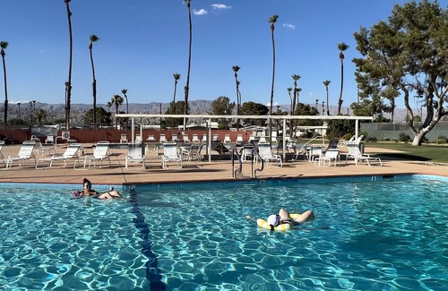Located in Tri Palms Estates, Thousand Palms, California (off Interstate 10). Perfectly situated 15 minutes from Palm Springs International Airport or the El Passeo Premier Shopping in Palm Desert , 20 min into the stylish heart of the Palm Springs downtown and 5 minutes to Costco,Walmart,Regal Movie theatre and a wide assortment of restaurants. It is the perfect hidden place for your getaway in to the beautiful Palm Springs Desert providing a peek into the beauty of the mountain and the stunning presence of the typical Palm Trees of the desert. Our home is designed for a very relaxing time away from the stressing everyday life. It has a beautiful private landscaped yard and is on a quiet Cul de Sac. It is a 1300 sq foot home with a large south facing covered deck where you can enjoy your first cup of coffee and breakfast in the lovely morning sun. Inside it features 2 bedrooms,(master bedroom with king sized bed and ensuite) 2 bathrooms an open concept wide, spacious and full of daylight living room with vaulted ceiling, seated dining area, kitchen with new appliances, dishwasher, washer/dryer. The Tri Palm Estates has a Club House, two swimming pools, two jacuzzi, restaurant, bar, shuffle board, pickle ball, tennis court , 18 hole and a par 3 nine hole green golf course. All utilities that are included are: Internet, Power, Water, Gas and Garbage/ Recycle. We do not have a Golf cart. We also will only take a minimum 3 month booking due to shortage of cleaning staff. Our last winter tenants enjoyed their stay at our home in Tri Palms so much that they bought their own home. No pets and no smoking please.
