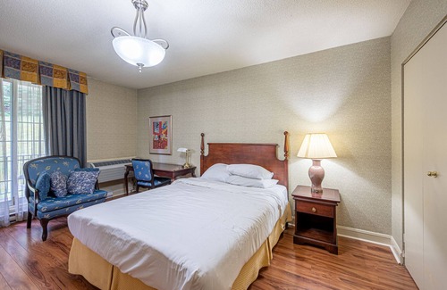 Stay in the centre of the action in this one-of-a-kind place & more... Queen size bed, full bath, small balcony, mini fridge and Keurig coffee machine with coffee pods; complete linens, towels and toiletries shampoo, conditioner and soap. Enjoy getting around as you are in the heart of town, minutes from Ski, waterpark, shopping and our very own AU Charbon Apportez Votre Vin restaurant steak house & pizzeria