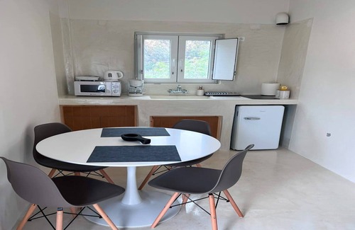This apartment offers a range of amenities to ensure a comfortable and enjoyable stay. Stay cool and refreshed with the air conditioning provided. The bathroom features a shower and is equipped with bath amenities for your convenience. Store your belongings in the closet and make use of the coffee facilities available. Step outside to indulge in the external jacuzzi and soak up the serene surroundings. For entertainment, a flat-screen TV is provided. The fully equipped kitchenette allows you to prepare your own meals, and a furnished private terrace is available for you to relax and enjoy the outdoor space. Other amenities include a hairdryer, individually controlled air conditioning, a kitchen with all the essentials, linens, a living room, a private entrance, a private balcony or terrace, a refrigerator, a sea view, a sofa bed, towels, and complimentary Wi-Fi internet access.
