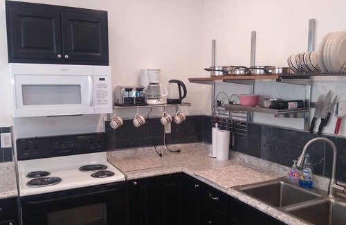 Hannibal is full of forgotten historic houses and we have specialized in finding and restoring them to useful life again. This home is walkable to all the downtown attractions and has every modern convenience in an open environment with great views, lots of windows and a spacious backyard. It's an unusual layout (we call it a townhouse layout) with two bedrooms on the ground floor, each with its own ensuite bath and a third on the top floor with a single bed. There's a walkout to the back patio and firepit with bar-type seating for late afternoon drinks on the patio. The European-style kitchen offers loads of counter space with range, fridge and microwave.