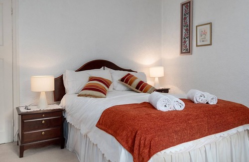 The house, sleeping up to 6, has three bedrooms; two really spacious double bedrooms overlooking the village, and a third twin bedroom, overlooking the large, enclosed, private rear garden. A family bathroom is also upstairs, with bath, separate (electric) shower, WC and basin.