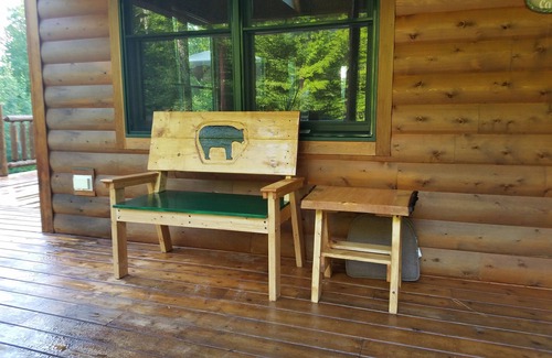 This listing is for a private space on the lower level of the cabin. Enter through a private entrance around back where you will have a full bathroom, one bedroom (double bed and single bed), dining area (table, microwave, sink) studio area queen bed. Big screen TV and couch. All space is climate controlled.