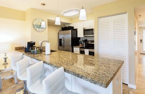 This immaculate two bedroom two bath condo features thoughtful and creative decor that perfectly blends style, comfort, and convenience. The master bedroom boasts a king-size bed and an ensuite master bathroom and flat screen TV, while the guest bedroom features a queen bed perfect for family vacationers.