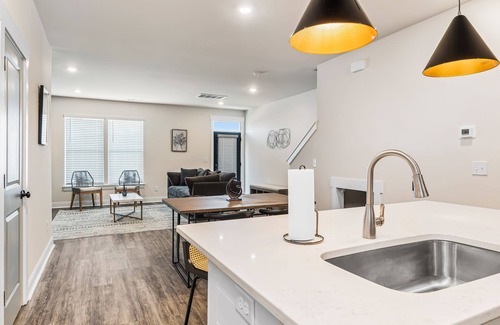 The whole group will be comfortable in this spacious 2200 sq.ft townhome with contemporary decor. Located 1 minute from Charlotte Southend, 5 mins from Carowinds, and 10 mins from Charlotte Uptown. New construction with available adjacent units for large groups. Perfect for midterm stays & corporate rentals. Long suite of amenities available to guests that stay over 30 consecutive days!