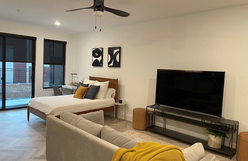 Stylish micro apartment steps to dining, entertainment and culture. Dozens of restaurants, boutiques, and nightclubs at your fingertips. Steep in the arts at the Universal Preservation Hall, sip an expertly crafted cocktail at a speakeasy, stroll sidewalks rich in history and immerse yourself in all that Saratoga Springs has to offer. The apartment itself is a modern studio with double bed, seating, full kitchen, ample closet space, dishwasher, washer/dryer and attached patio. We are pet-friendly (pet fee applies), but require that the pet and all guests are quiet, as this is a quiet building.