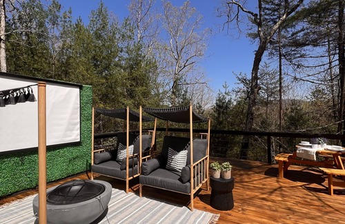 Luxe Outdoor Movie Theater Hot Tub Glamping Dome | Cabin in Mineral Bluff