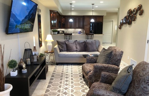 Discover comfort and style in our luxurious townhome. This sparkling clean space offers a single-level entry with keyless convenience. Unwind in the living room with a 55” Smart TV and PS4, or create culinary delights in the gourmet kitchen featuring marble countertops and modern appliances. The master king bedroom boasts a walk-in closet, and the bathroom showcases a beautifully tiled dual shower. Enjoy the sun and relax in the courtyard with a mountain view of Pikes Peak! Your retreat awaits!