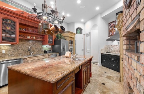 Step inside and be immediately greeted by the grandeur of the 12-foot ceilings and open, airy layout of the villa. The living room is designed for both relaxation and entertaining, with ample seating to gather your loved ones or colleagues. The villa's unique architecture and stylish decor, including custom furnishings and fine finishes, make every space feel both elegant and inviting. The interior includes a variety of living areas for different occasions, including a cozy den and an incredible 14-seat movie theater, perfect for family movie nights or corporate events. The theater room includes all the high-tech equipment you need for a cinematic experience—just rent your favorite films and pop fresh popcorn in the machine provided!