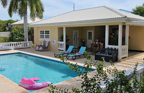 The Davijon Villa seamlessly blends luxurious living with an open-concept contemporary outdoor lifestyle. Situated in the tranquil Juba Sound, the only disruptions are the gentle rustling of leaves from towering palm trees, fruit trees, and vibrant flower plants that surround the cottage. Bask in the sunlight or immerse yourself in a captivating book while reclining on a comfortable lounge chair on the expansive pool deck. Refresh yourself in the inviting azure waters of the glistening pool.