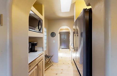 Escape to luxury at the Rancho de Santa Fe retreat, a stunning 5-bedroom house just a stone's throw away from downtown Santa Fe. This exquisite home can accommodate up to 8 guests, offering private suites with kitchenettes and porches for the ultimate relaxation.