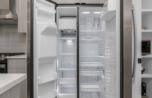 Inside, you'll find a bright, airy living space with contemporary decor and plenty of natural light. The fully equipped kitchen is perfect for preparing meals at home, and the adjacent dining area has ample seating for all guests. After a long day of sightseeing, relax in the comfortable living room with a large flat-screen TV and cozy seating.