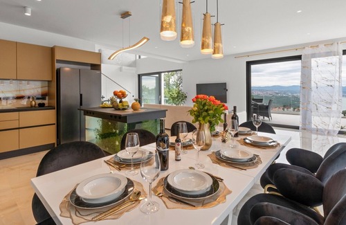 Leave your everyday life behind and relax in the modern Villa Gabi, located in the Kvarner region with a view of Rijeka and the Adriatic Sea. The villa can accommodate up to 8 + 2 people, making it a perfect choice for a larger family or group of friends.