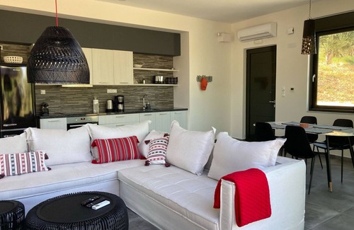 Welcome to Villa Phi, an exquisite haven nestled in Modi Platanias, just outside the heart of Chania, Crete. This newly constructed complex offers a luxurious retreat, featuring a two-story main house and a single-story guest bungalow, surrounded by a sprawling 7,000 sqm olive grove. With breathtaking panoramic views of both the Bay of Chania and the majestic White Mountains, Villa Phi promises an unparalleled Greek island experience.